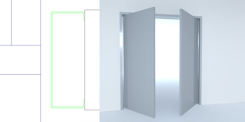 - Marco sin batiente, lo que le da doble acción a la puerta, para uso en puertas pares abatibles en ambos sentidos.